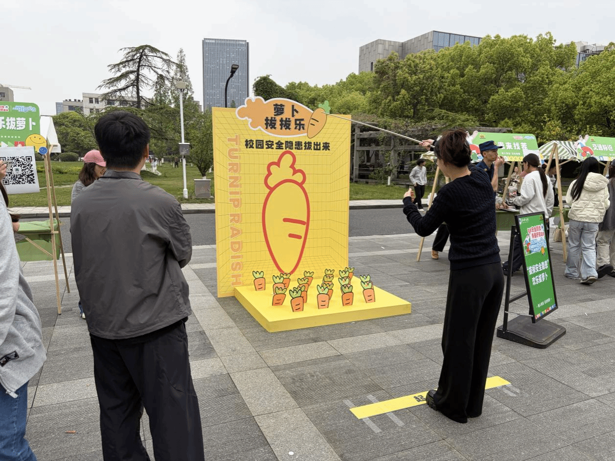 活动现场,精心设置了知识挑战区、互动体验区、春日游乐区三大板块,推出国家安全飞行棋、火眼金睛辨隐患、反诈飞镖、模拟打靶、违章电器套圈、CPR 实训、毒品仿真展示、消防逃生路线绘制等 23项互动体验项目,校园广场化身为沉浸式 “安全课堂”。同学们手持游园集章卡,逐项打卡闯关,在轻松游戏中学习安全知识,在亲身体验中掌握防护技能。