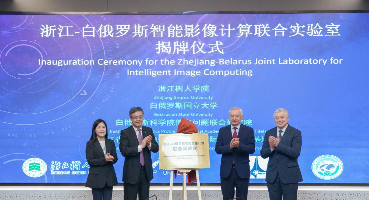 4月17日,浙江-白俄罗斯智能影像计算联合实验室揭牌仪式暨第十届中白人工智能与计算机视觉学术研讨会在浙江树人学院举行。欧洲科学院士、白俄罗斯国家科学院与工程院两院士谢尔盖·阿布拉梅科,科学院通信院士、联合实验室外方主任亚历山大·图齐科夫,浙江树人学院校长李鲁,副校长叶时平、陈浚,学科建设与发展规划处处长史丽云,国际交流与合作处处长万国伟,联合实验室中方主任、信息科技学院党委书记陈超祥,副院长戴国勇等出席仪式。揭牌仪式由叶时平主持。
