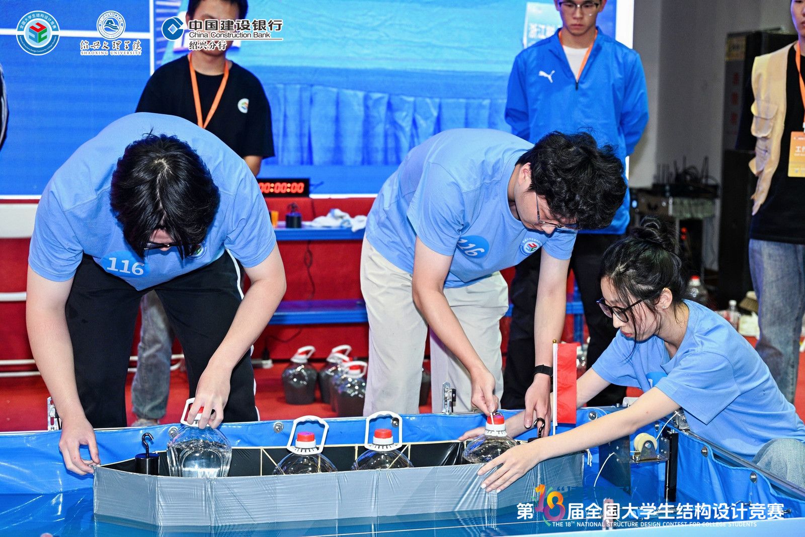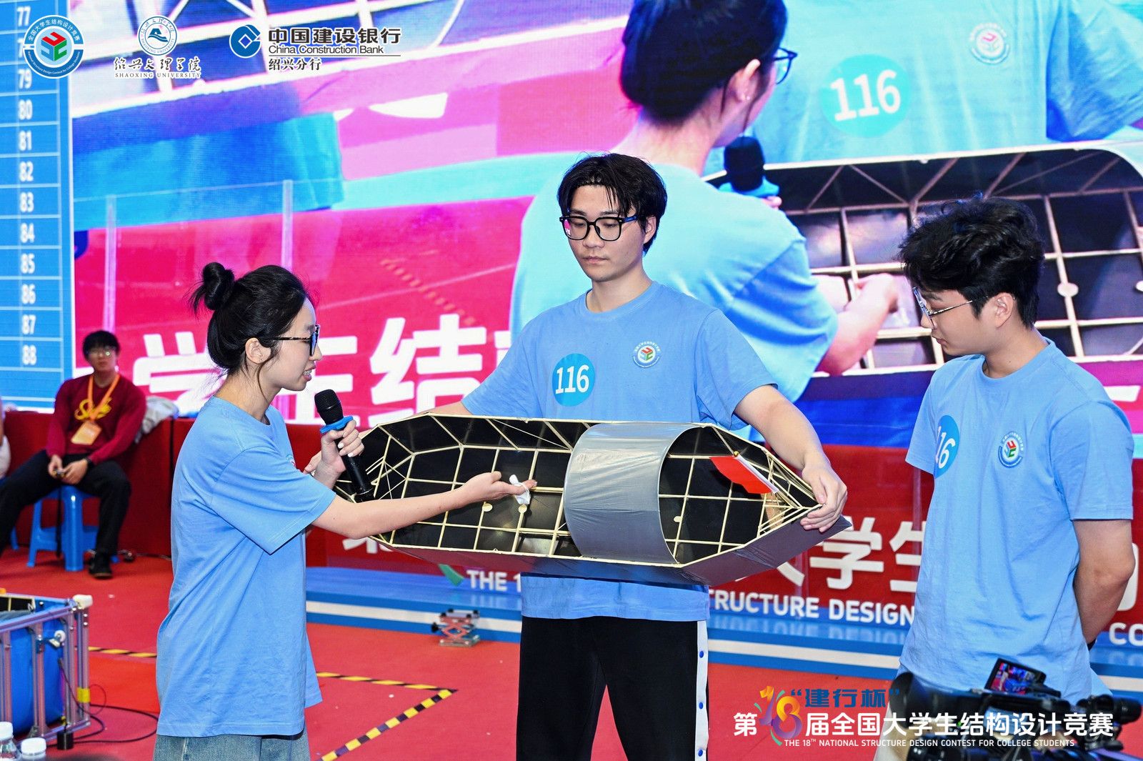 本次比赛由城建学院院长金小群带队出征,在指导老师楼旦丰和黄晋的倾力指导下,陈诗妍、徐嘉炫、张傅三位城建学子团结拼搏,历时15个小时现场制作,模型作品“阳光之舟”承受住了三次加载,最终脱颖而出,摘得桂冠。