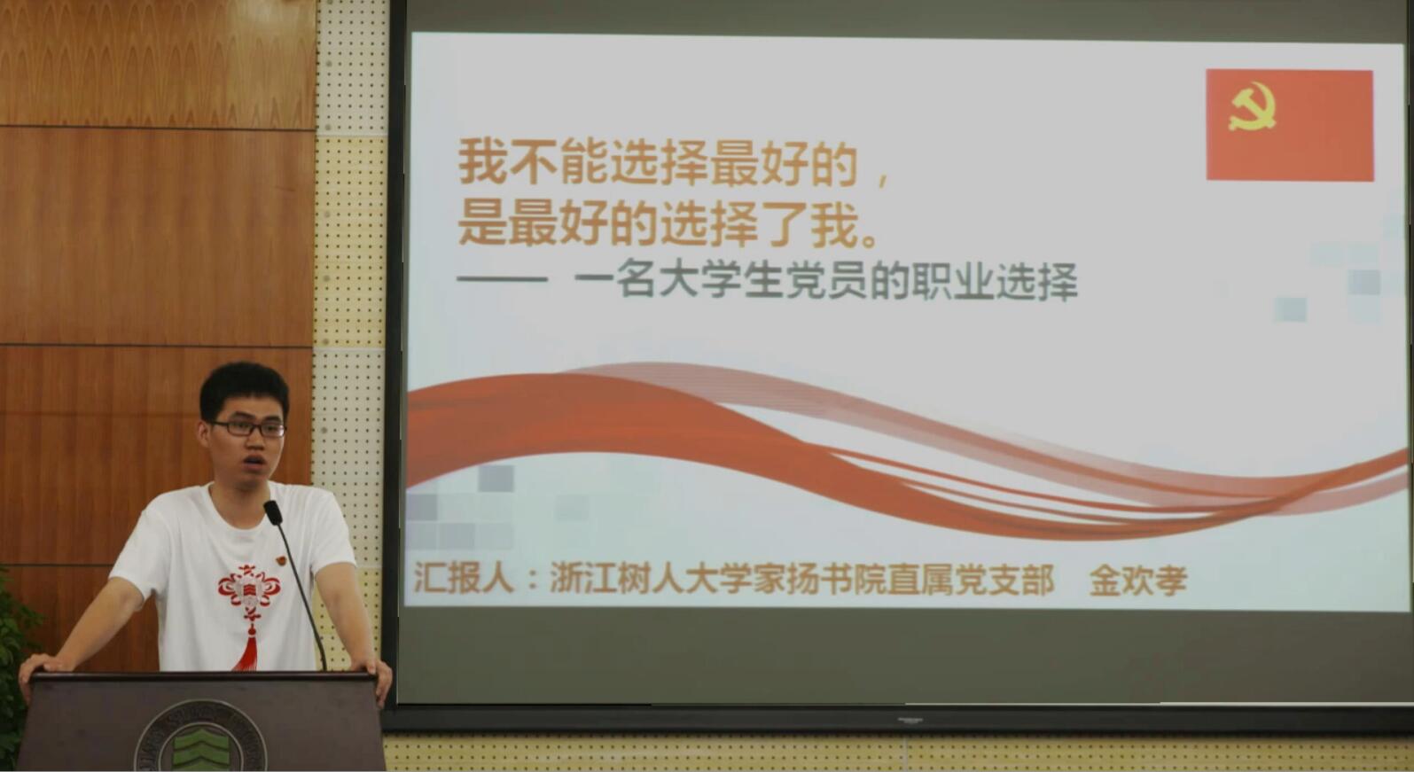 5月18日上午,举行了以“弘扬红船精神,走好新时代的长征路”为主题的浙江树人大学2018年微型党课比赛。通过激烈的角逐,家扬书院直属党支部金欢孝同学主讲的党课《我不能选择最好的,是最好的选择了我——一名大学生党员的职业选择》获得比赛第一名。