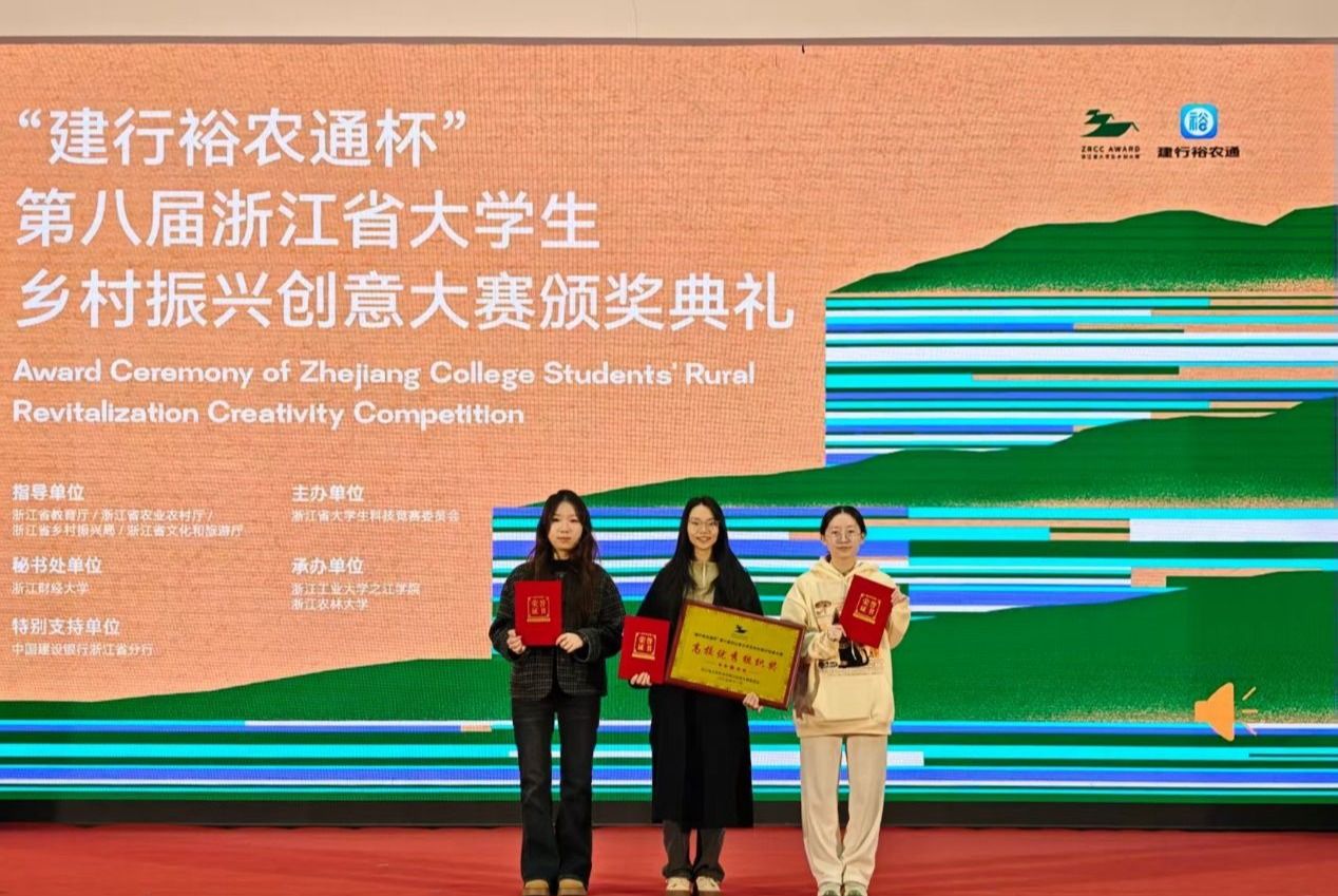 近日,从“建行裕农通杯”第八届浙江省大学生乡村振兴创意大赛闭幕式现场传来捷报。经过与全省108所高校、5325支团队的激烈角逐,我校学子凭借卓越的创新能力和扎实的实践功底,最终斩获金奖8项、银奖6项、铜奖7项,共计21个奖项的优秀成绩,获奖总数与高等级奖项数量均实现历史性突破。同时,学校因组织工作表现突出,被大赛组委会授予 “高校优秀组织奖” ,实现了竞赛成绩与精神文明双丰收。获奖名单如下:“建行裕农通杯”第八届浙江省大学生乡村振兴创意大赛主体赛花获奖名单“...