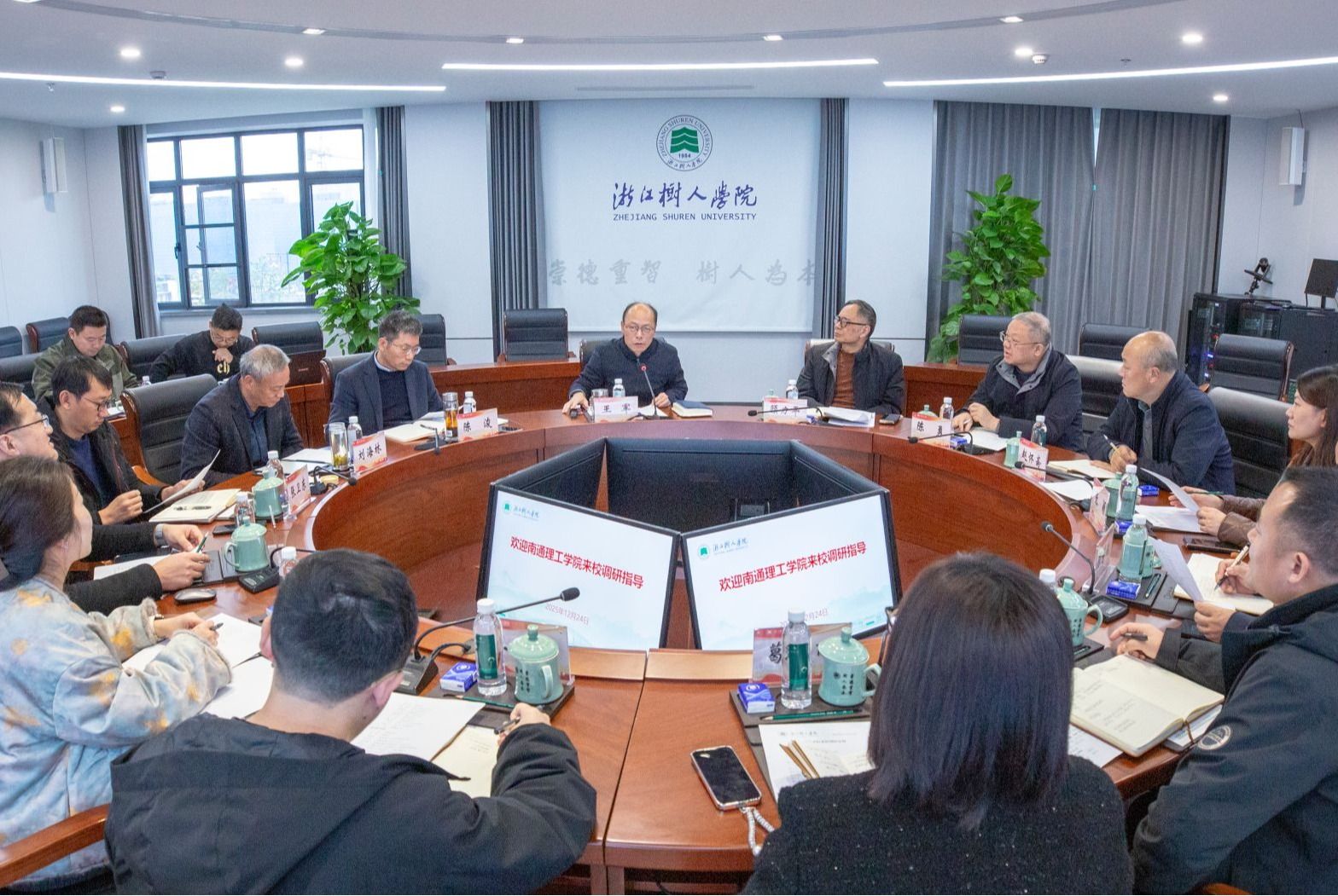 12月24日,南通理工学院副校长顾力平、陈勇、赵怀斋一行12人莅临我校拱宸桥校区调研交流,党委副书记王军、副校长陈浚出席座谈交流会,校(党)办、人事处、学工部、科研处、建资处、信息处、后勤处、校团委等部门相关负责人参加座谈。座谈会上,王军首先代表学校对顾力平一行的到访表示热烈欢迎,并围绕办学历程、办学特色、办学成效和未来发展四个方面详细介绍了我校发展情况。他表示,近年来,学校坚持党建统领,聚焦学科建设,致力于培养高水平应用型人才,...